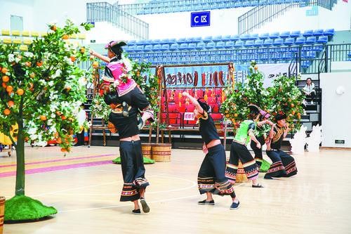 雅安市代表團教練李鏡文告訴記者,《石炯諧博》表演項目依托當?shù)匾图颐袼?,在黃果柑豐收的季節(jié),石棉縣彝族小伙、姑娘們在果林里采摘黃果柑時所產(chǎn)生的勞動趣味競技活動的演繹,反映了少數(shù)民族地區(qū)經(jīng)濟發(fā)展、社會繁榮穩(wěn)定、各族人民安居樂業(yè)的生活和精神風貌。