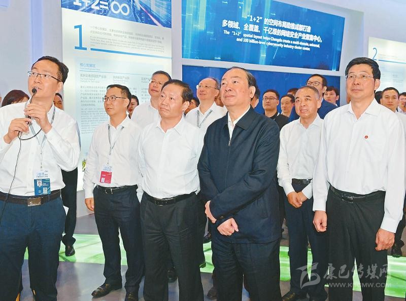 9月19日,中共中央政治局委員、中宣部部長黃坤明等參觀網(wǎng)絡(luò)安全博覽會(huì)。 川報(bào)記者 歐陽杰 攝