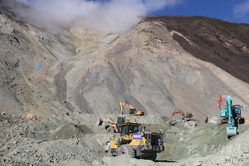 11月7日,又有7臺挖掘機抵達(dá)則巴村。當(dāng)天中午,道路開辟工作開始全面推進。人輪班機器不休息,經(jīng)過半天一夜的不間斷施工,終于在8日8時過將通往江邊的7.5公里通道打通。挖掘機繼續(xù)沿著相對平坦的河床向上,開辟通往堰塞體壩頂?shù)牡缆贰?日下午2時28分,來自水電五局的挖機手趙明喜將第一臺挖掘機成功開上壩頂,比預(yù)計時間提前18個小時?!斑@個時間點我記得很清楚,這提前的18個小時給后續(xù)搶險救援騰出了寶貴的時間?!笔?yīng)急管理廳副廳長毛德忠說。