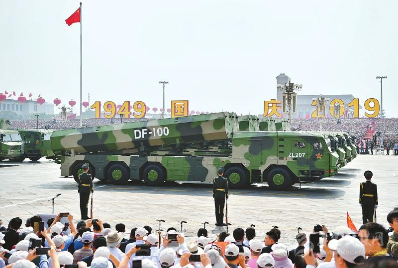 在受閱地面方隊壓軸的戰(zhàn)略打擊模塊中,首次亮相的東風(fēng)-41核導(dǎo)彈方隊彰顯了我國最先進最具有威懾力大國長劍的重要地位。