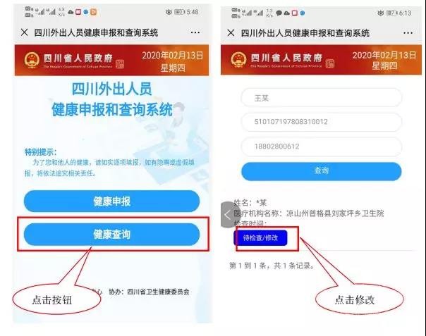 查詢人員經被查詢人同意后,進入“健康查詢”欄目,輸入被查詢人的姓名、身份證號、手機號碼(3 個要素須全部齊全),即可查詢相關信息。也可在微信“支付”和支付寶首頁掃碼查看。