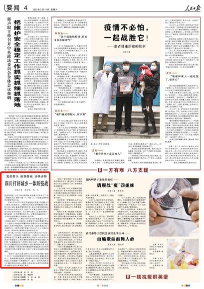 今天,人民日?qǐng)?bào)刊發(fā)題為《黨員帶頭 依靠群眾 齊抓齊防——四川打好城鄉(xiāng)一體防疫戰(zhàn)》的文章,聚焦四川依法防治、聯(lián)防聯(lián)控、科學(xué)防治疫情,進(jìn)一步織密疫情防控網(wǎng)。