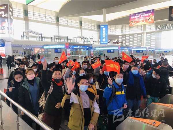 11:30分,D4755次返崗專列緩緩啟動。 站臺上的,前來送行的省農(nóng)民工服務(wù)中心工作人員們使勁揮起了雙手。車廂里,有的農(nóng)民工揮起了印有“一路平安”的小紅旗,有的隔著車窗豎起了大拇指……這讓省人社廳返崗服務(wù)專班交通保障組組長、省農(nóng)民工服務(wù)中心副主任秦家雷眼眶濕潤。秦家雷介紹,D4755次返崗專列的組織工作于2月18日開展,通過人社、交通、衛(wèi)健、鐵路等部門系統(tǒng),以及全省各市(州)、縣、鎮(zhèn)、村的大力配合,在不到兩天時間內(nèi),完成了917名返崗人員的摸排、健康體檢、車票購買諸多事項,充分體現(xiàn)了各系統(tǒng)各部門對農(nóng)民工的關(guān)心關(guān)愛,對復(fù)工復(fù)產(chǎn)抗擊疫情的努力和信心。