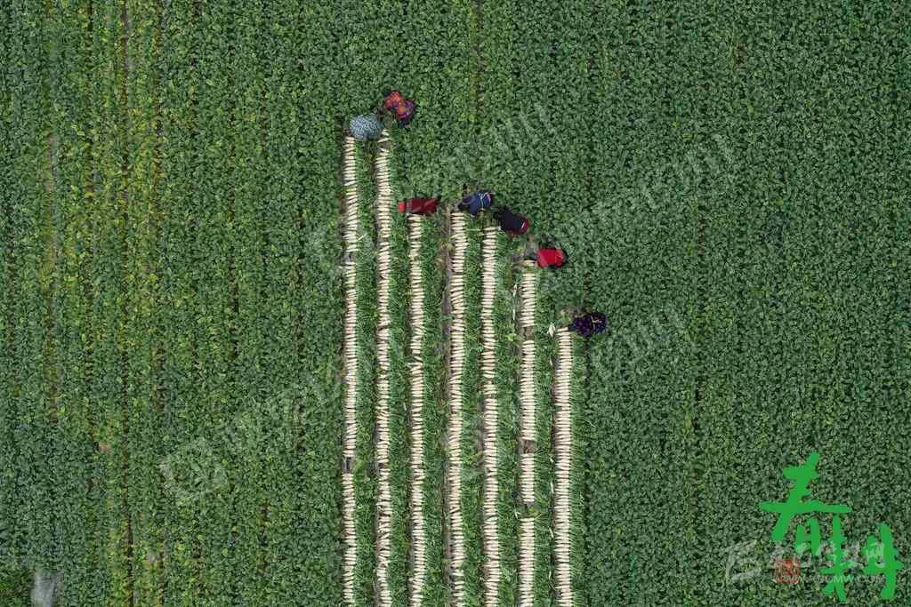 南充嘉陵區(qū)河西鎮(zhèn),農(nóng)業(yè)工人正在采收白白的大蘿卜。