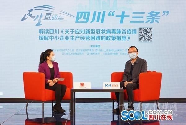 四川在線消息(記者 鄧童童 攝影 華小峰)為緩解疫情影響下中小企業(yè)面臨的生產經營困難,半個月前,四川省政府出臺“十三條”具體政策措施。政策措施落實情況如何?中小企業(yè)復工復產還有哪些問題需要解決?2月25日,四川日報全媒體集群邀請來自省民營辦、省發(fā)展改革委、人力資源社會保障廳、司法廳、省稅務局、省金融監(jiān)管局等“十三條”政策措施起草牽頭部門嘉賓對此開展解讀,并回答企業(yè)和網(wǎng)友們的問題。