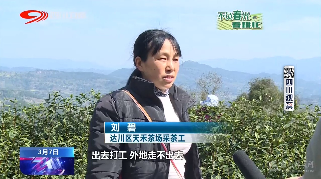 達(dá)川區(qū)天禾茶場采茶工劉碧:我們今年這個疫情期間出去打工外地走不出去,所以說我們聽了茶場招工,我們就到茶場找工作,掙點錢,賺點生活費。