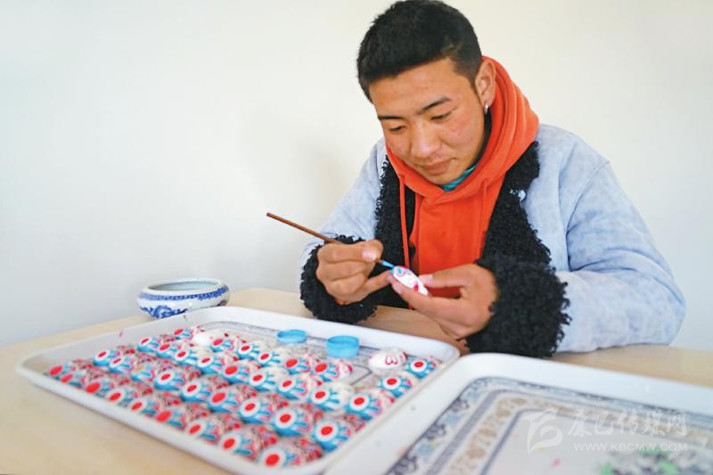 本著自主自愿的原則,教學班結束后,65名藏族青年主動加入扶貧彩繪實訓班,成為項目的第一批學員。“實訓期間不需要交任何費用,還包吃住。我對畫京劇臉譜很有興趣,我們第一個月學習繪畫基本功,第二個月開始,根據成品質量,就可以計件得酬勞,學習期間我每月能掙500多元。”邛批說。