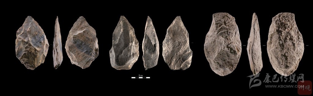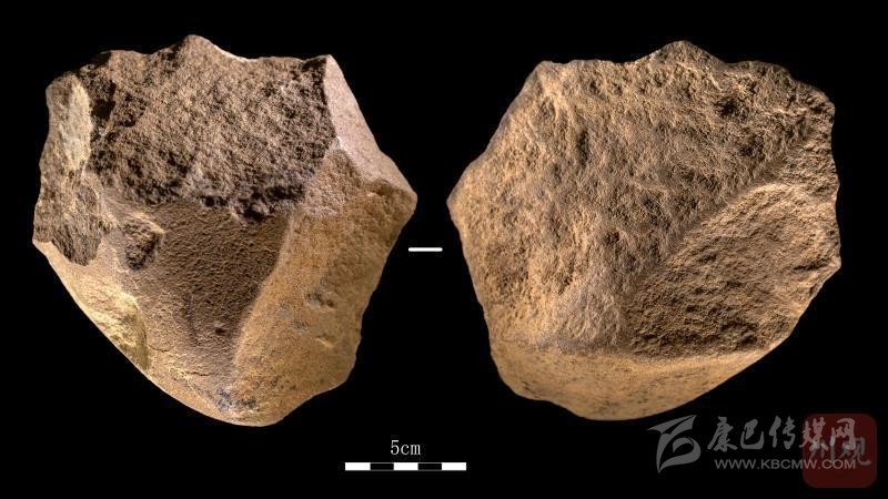 這塊有一端很尖的石頭,據(jù)說叫小型兩面器,看上去和手斧有點(diǎn)像,但比手斧小很多,目前在國內(nèi)舊石器時(shí)代尚屬首次發(fā)現(xiàn)。原來,它就是從石塊上打下的石片經(jīng)過加工后而成。它的邊緣頗為鋒利,端部尖銳,同樣具有切割、鉆孔等多種功能。
