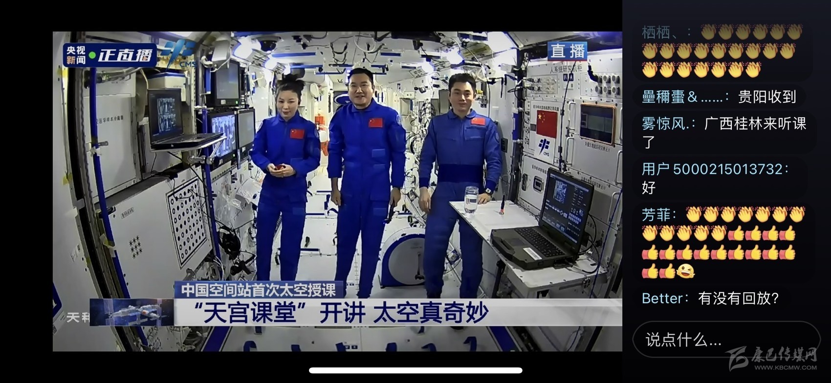 12月9日15時40分,中國首個太空科普教育品牌“天宮課堂”正式推出,中國空間站首次太空授課活動面向全球進(jìn)行直播。直播大家并不陌生,但由航天員擔(dān)任“太空教師”的太空“直播間”,如何將內(nèi)容從空間站傳回地球呢?