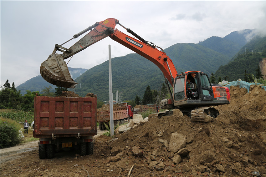 地震造成燕子溝到磨西鎮(zhèn)公路出現(xiàn)一段長達(dá)100米的半幅坍塌,急需挖掘機(jī)挖方填埋。鎮(zhèn)領(lǐng)導(dǎo)正在尋找挖掘機(jī),沒想到牛茂良主動請纓,在欣喜萬分之時(shí)也對他翹起了大拇指。
