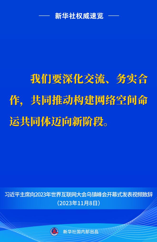 11月8日上午,國(guó)家主席習(xí)近平向2023年世界互聯(lián)網(wǎng)大會(huì)烏鎮(zhèn)峰會(huì)開(kāi)幕式發(fā)表視頻致辭。一起來(lái)看金句。