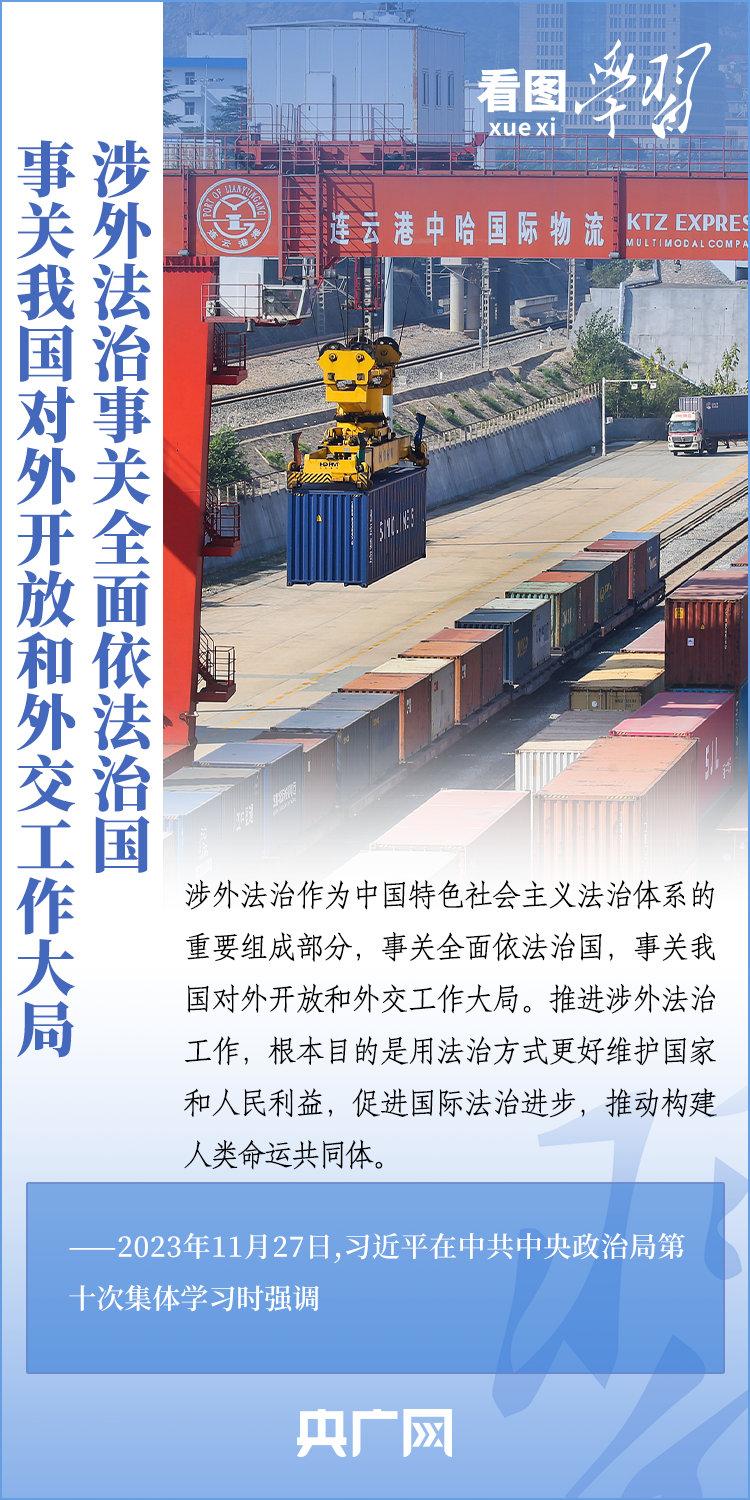 涉外法治作為中國特色社會(huì)主義法治體系的重要組成部分,事關(guān)全面依法治國,事關(guān)我國對外開放和外交工作大局。11月27日,中共中央政治局就加強(qiáng)涉外法制建設(shè)進(jìn)行第十次集體學(xué)習(xí)。習(xí)近平總書記在主持學(xué)習(xí)時(shí)強(qiáng)調(diào),加強(qiáng)涉外法治建設(shè)既是以中國式現(xiàn)代化全面推進(jìn)強(qiáng)國建設(shè)、民族復(fù)興偉業(yè)的長遠(yuǎn)所需,也是推進(jìn)高水平對外開放、應(yīng)對外部風(fēng)險(xiǎn)挑戰(zhàn)的當(dāng)務(wù)之急。一起來學(xué)習(xí)!