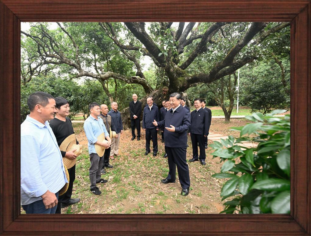 12月31日晚,國(guó)家主席習(xí)近平發(fā)表二〇二四年新年賀詞。 推近、定格、銘記,透過總書記身后書架上的一張張照片,我們記住過去,也對(duì)未來充滿信心。 不變的情懷 幾張老照片,在書架上擺放多年,人們已經(jīng)非常熟悉。 習(xí)近平同志青年時(shí)期的軍裝照,連續(xù)第3年出現(xiàn),擺放在書架醒目位置。 這令人不由得想起10年前的一段暖心對(duì)話—— 2013年11月,湖南十八洞村,村民石拔三老人見到了來此考察的習(xí)近平總書記。 “怎么稱呼您?”“我是人民的勤務(wù)員?!?/p> 歲月流轉(zhuǎn),初心不改。從照片上的青年,到人民的勤務(wù)員,“我將無我,不負(fù)人民”的赤子情懷始終如一。 家庭是個(gè)人溫馨的港灣。習(xí)近平同志一家三口和父親習(xí)仲勛在一起、習(xí)近平同志在福州時(shí)帶女兒玩的照片,自總書記第一次發(fā)表新年賀詞以來,就一直擺在書架上。 2023年,又有幾張新的總書記家庭照片映入眼簾。 一張是習(xí)仲勛同志的單人照。 2023年是習(xí)仲勛同志誕辰110周年。習(xí)近平總書記從小深受父親影響,形容父親“像一頭老黃牛,為中國(guó)人民默默地耕耘著”,“這也激勵(lì)著我將自己的畢生精力投入到為人民群眾服務(wù)的事業(yè)中,報(bào)效養(yǎng)育我的錦繡中華和父老鄉(xiāng)親”。 同夫人彭麗媛在深圳錦繡中華景區(qū)的留影、習(xí)近平夫婦懷抱女兒的合影,也是第一次出現(xiàn)在書架上。 天下之本在家。習(xí)近平總書記指出,家庭和睦則社會(huì)安定,家庭幸福則社會(huì)祥和,家庭文明則社會(huì)文明。 修身、齊家,家好、國(guó)更好。習(xí)近平總書記率先垂范,對(duì)家人的責(zé)任、對(duì)家風(fēng)的傳承、對(duì)家教的認(rèn)真令人動(dòng)容。 不停的步履 11張2023年拍攝的照片,留下習(xí)近平總書記過去一年治國(guó)理政的經(jīng)典瞬間。 2023年,習(xí)近平總書記共進(jìn)行了16次國(guó)內(nèi)考察,出訪4次,在國(guó)內(nèi)數(shù)十次會(huì)晤到訪的各國(guó)各界人士。 將鏡頭拉遠(yuǎn),總書記的身影不辭萬里—— 向南,習(xí)近平總書記來到位于我國(guó)大陸最南端的廣東省湛江市徐聞縣;向北,考察中國(guó)最北端的黑龍江省漠河市北極村;向西,視頻連線守衛(wèi)祖國(guó)西大門的新疆軍區(qū)紅其拉甫邊防連執(zhí)勤哨所。 這張同紅其拉甫邊防連執(zhí)勤哨所等進(jìn)行視頻通話的拼版照片,正是書架上的新照片之一。 “黃河九曲、長(zhǎng)江奔流,總讓人心潮澎湃、豪情滿懷?!?023年,長(zhǎng)江流經(jīng)的11個(gè)省市里,習(xí)近平總書記考察了4個(gè);黃河沿線的9個(gè)省區(qū)里,考察了5個(gè);大運(yùn)河涉及的8個(gè)省市里,考察了5個(gè)。 北瀕長(zhǎng)江、南臨廬山、東枕鄱湖,江西九江的中國(guó)石化九江分公司位置特殊。10月,習(xí)近平總書記來到這里時(shí),員工們圍攏過來紛紛向總書記問好。 總書記親切地說,希望你們按照黨中央對(duì)新型工業(yè)化的部署要求,堅(jiān)持綠色、智能方向,扎扎實(shí)實(shí)、奮發(fā)進(jìn)取,為保障國(guó)家能源安全、推動(dòng)石化工業(yè)高質(zhì)量發(fā)展作出新貢獻(xiàn)。 “追求卓越 勇創(chuàng)一流”——墻上的標(biāo)語仿佛大家的回應(yīng)。這一幕,也被相機(jī)定格。 將鏡頭推近,總書記的關(guān)切無微不至—— 這是對(duì)生產(chǎn)的關(guān)心。 萬畝甘蔗林中,習(xí)近平總書記同身著民族服裝的蔗農(nóng)走在一起,大家的笑容像甘蔗一樣甜??倳洝盀楸U蠂?guó)家糖業(yè)安全、促進(jìn)蔗農(nóng)增收致富發(fā)揮更大作用”的叮嚀深入人心。 古老荔枝樹下,總書記同現(xiàn)場(chǎng)技術(shù)人員親切交流,指出要著力做好“土特產(chǎn)”文章,以產(chǎn)業(yè)振興促進(jìn)鄉(xiāng)村全面振興。 這是對(duì)企業(yè)的關(guān)注。 9月,習(xí)近平總書記來到浙江義烏國(guó)際商貿(mào)城考察,人們紛紛從商鋪中走出來,掌聲、問候聲、歡呼聲此起彼伏。 面對(duì)商戶、小企業(yè)主們,總書記點(diǎn)贊道:“義烏小商品闖出了大市場(chǎng)、做成了大產(chǎn)業(yè),走到這一步很了不起,每個(gè)人都是參與者、建設(shè)者、貢獻(xiàn)者?!?/p> 這是對(duì)人民的關(guān)懷。 2023年,華北、黃淮等地出現(xiàn)極端降雨,引發(fā)洪澇和地質(zhì)災(zāi)害。 北方入冬之際,習(xí)近平總書記來到北京、河北受災(zāi)較重的相關(guān)地區(qū),看望慰問受災(zāi)群眾。書架上這張照片,便是總書記在北京門頭溝妙峰山鎮(zhèn)水峪嘴村考察時(shí)留下的。 一度被洪水淹沒的水峪嘴村已經(jīng)修葺一新,村民家中窗明幾凈、暖氣充足。 少年兒童的成長(zhǎng),習(xí)近平總書記一直牽掛在心,書架上多次出現(xiàn)總書記同孩子們?cè)谝黄鸬膱?chǎng)景。 2023年精選的,是一張習(xí)近平總書記在北京育英學(xué)校的照片。 看到孩子們正在學(xué)生農(nóng)場(chǎng)勞動(dòng),總書記關(guān)心地說:“希望同學(xué)們從‘學(xué)農(nóng)’中感受到農(nóng)作的艱辛和農(nóng)民的不易,從小養(yǎng)成熱愛勞動(dòng)、珍愛糧食、尊重自然的良好習(xí)慣,為建設(shè)美麗中國(guó)作貢獻(xiàn)?!?/p> 不竭的力量 國(guó)徽高懸,熠熠生輝。這是一個(gè)歷史性的瞬間。 2023年3月10日,北京人民大會(huì)堂。全票當(