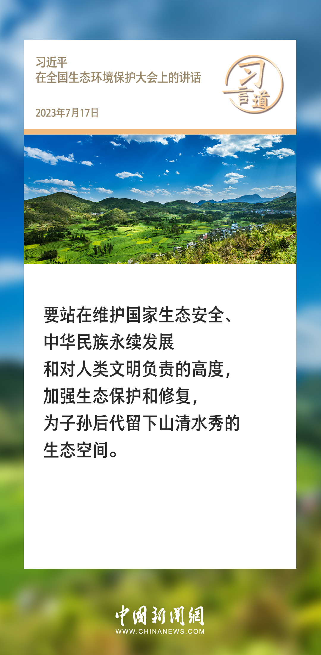 生態(tài)文明建設(shè)是關(guān)系中華民族永續(xù)發(fā)展的根本大計。黨的十八大以來,習(xí)近平總書記就生態(tài)文明建設(shè)發(fā)表過一系列重要論述,諸多“金句”深入人心。