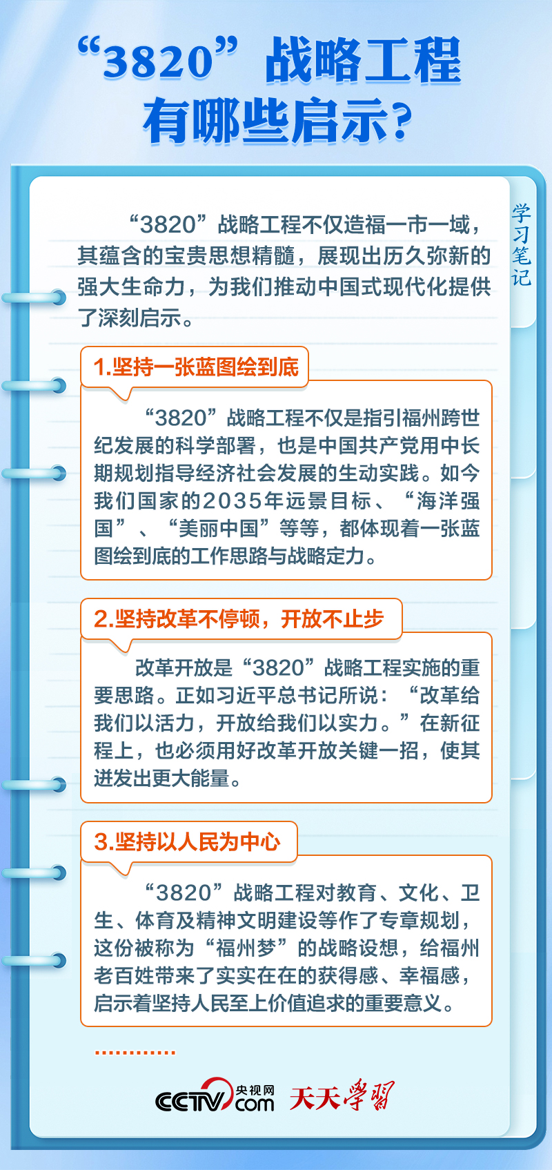 天天學(xué)習(xí)上世紀(jì)90年代,習(xí)近平在福州工作期間,親自主持編制了《福州市20年經(jīng)濟(jì)社會(huì)發(fā)展戰(zhàn)略設(shè)想》(簡稱“3820”戰(zhàn)略工程),系統(tǒng)謀劃了福州3年、8年、20年經(jīng)濟(jì)社會(huì)發(fā)展的目標(biāo)、步驟、布局、重點(diǎn)等,為福州擘畫了美好藍(lán)圖,確立了總綱領(lǐng)、總方略。