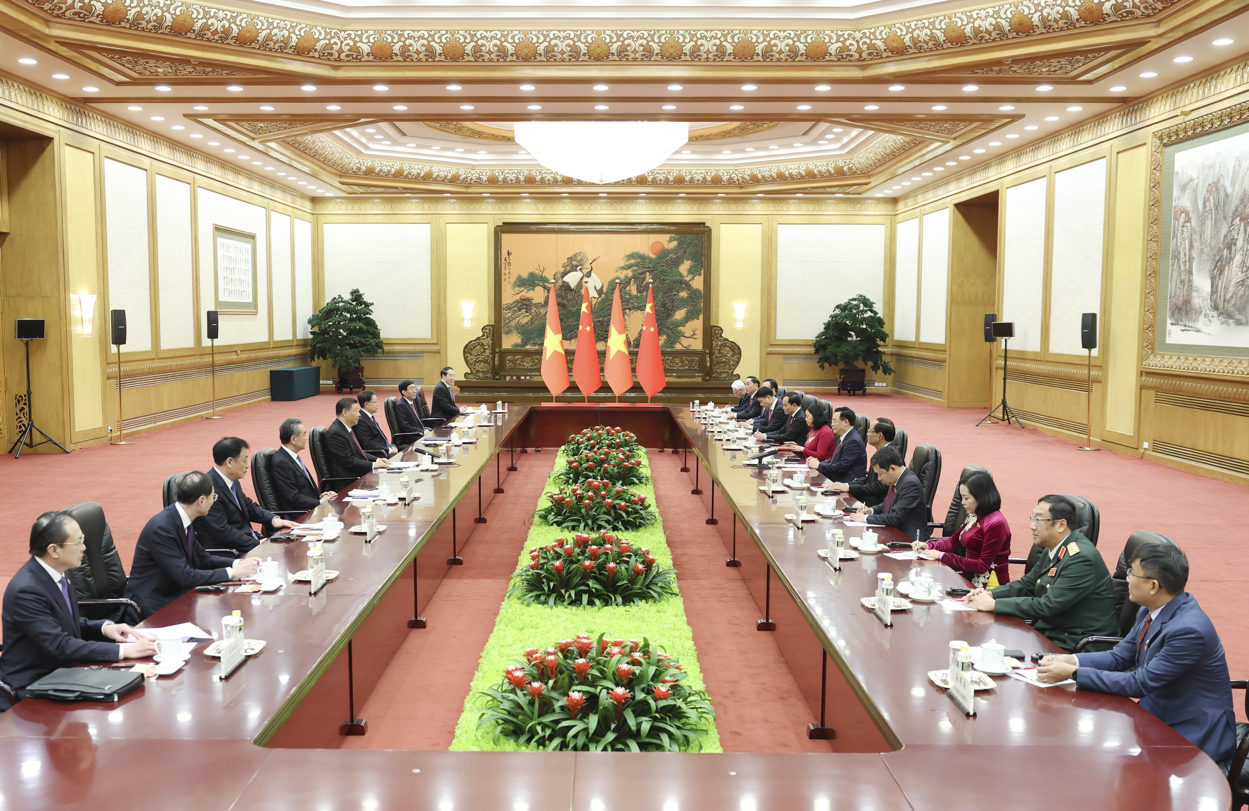 習近平強調(diào),當前,國際和地區(qū)形勢發(fā)生深刻復(fù)雜變化,捍衛(wèi)社會主義制度、維護國家穩(wěn)定和發(fā)展,是中越雙方共同利益所在。雙方要以高水平互信鑄牢中越命運共同體意識,以高質(zhì)量合作夯實中越命運共同體根基,以高度政治智慧推進中越命運共同體建設(shè)。中方愿同越方加強治黨治國理政經(jīng)驗交流,發(fā)揮好中越雙邊合作指導(dǎo)委員會的統(tǒng)籌協(xié)調(diào)作用,加快推進共建“一帶一路”倡議同“兩廊一圈”戰(zhàn)略對接,豐富青年、友城等渠道交流。希望雙方立法機構(gòu)深化各層級交流合作,加強立法監(jiān)督經(jīng)驗等互學(xué)互鑒,為增進兩國民間友好發(fā)揮重要作用。