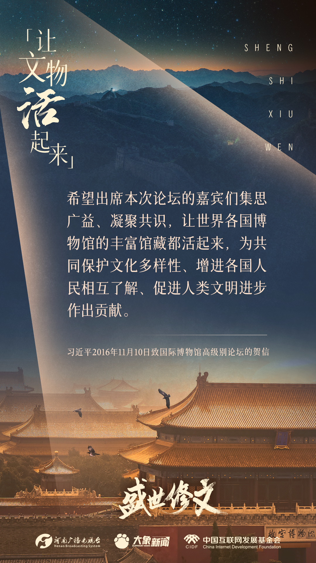《盛世修文》主題策劃,由中國互聯(lián)網(wǎng)發(fā)展基金會中國正能量網(wǎng)絡(luò)傳播專項基金資助支持。