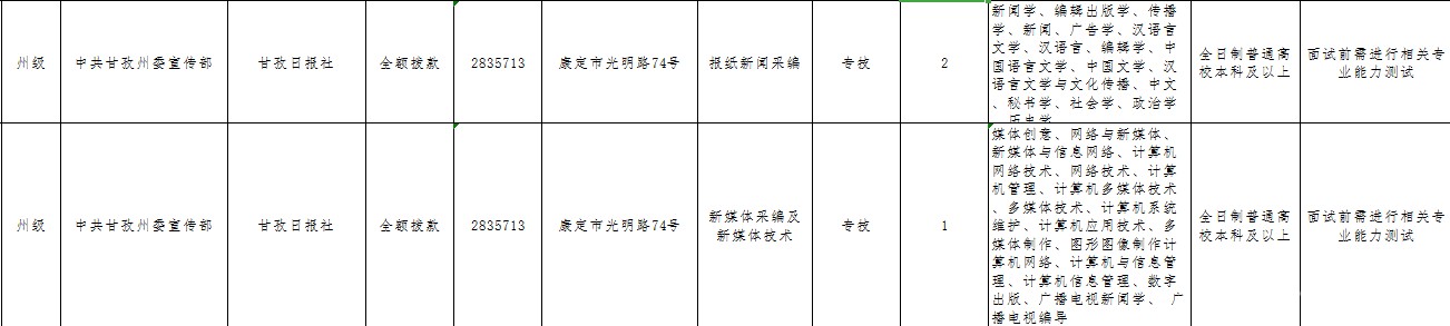 甘孜日報社公開考核招聘3名編制內(nèi)工作人員