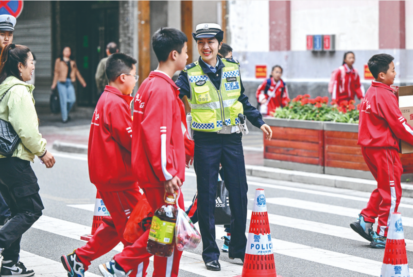 劉格蘆守護(hù)學(xué)子放學(xué)路。
