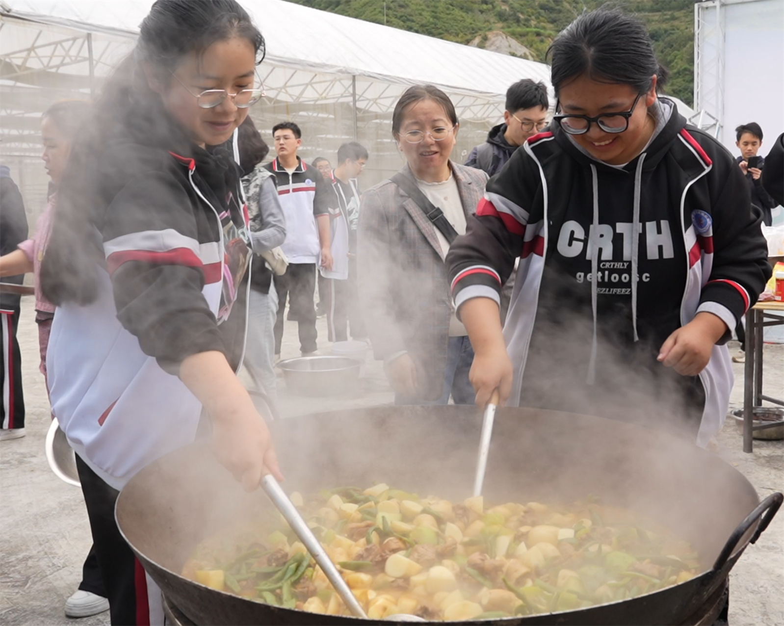 本網(wǎng)訊 “今天收獲了我們自己種的土豆,跟大家吃了壩壩宴,非常有意義,讓我體會到了一粥一飯來之不易?!睘o定中學(xué)高二3班馬灝文高興地說。