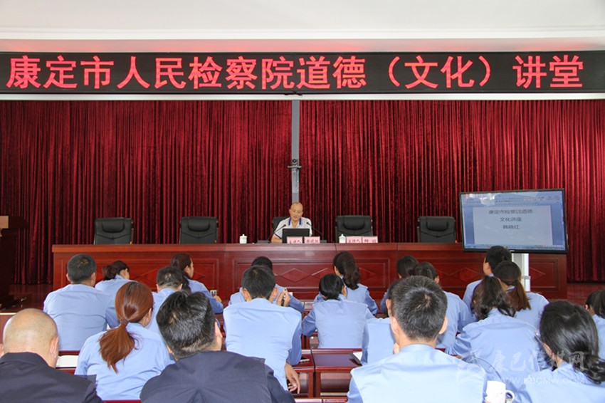 為推進(jìn)檢察文化與公民道德建設(shè),深入學(xué)習(xí)九龍縣人民檢察院原黨組書記、檢察長蘇知斌同志的先進(jìn)事跡,扎實(shí)開展政法機(jī)關(guān)“講政治、提能力、鑄忠魂”主題教育活動(dòng),8月2日,康定市人民檢察院舉辦了道德(文化)講堂活動(dòng)。我州學(xué)者韓曉紅圍繞康巴文化和社會(huì)責(zé)任等,作了題為“文化與社會(huì)安全”的專題講座。 (胡海佳 攝影報(bào)道)