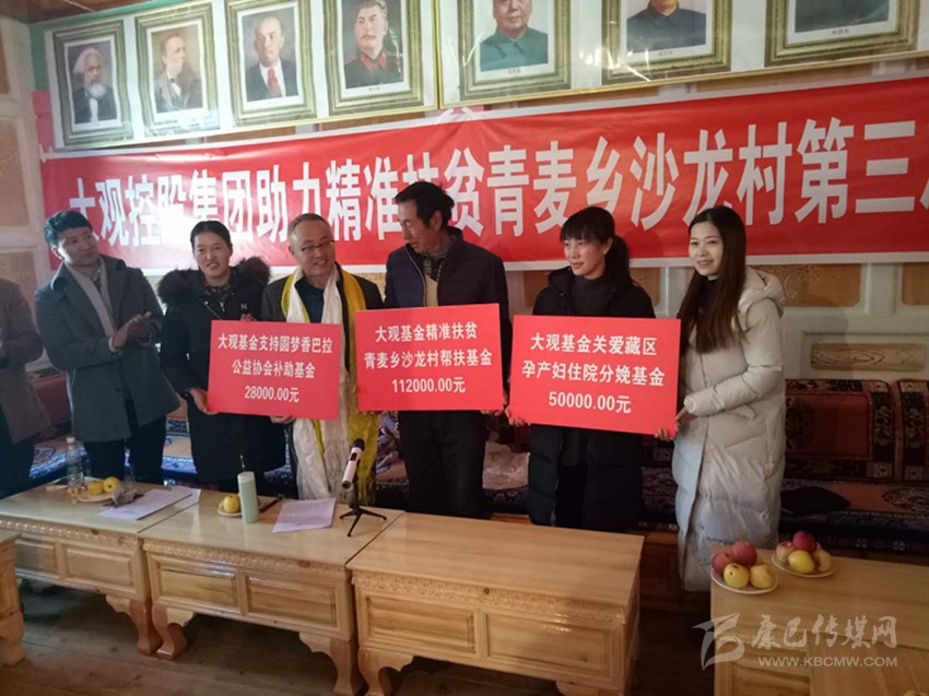 據(jù)悉,上海大觀慈善基金會(huì)黃宏文理事長(zhǎng)一行先后到由于室內(nèi)電線短路遭受火災(zāi)的水洼鄉(xiāng)和定波鄉(xiāng)受災(zāi)戶家中探望,詳細(xì)了解災(zāi)情和災(zāi)后生產(chǎn)生活狀況后,分別捐贈(zèng)7萬元和3萬元。隨后,前往青麥鄉(xiāng)沙龍村召開大觀控股集團(tuán)幫扶沙龍村精準(zhǔn)扶貧推進(jìn)會(huì),發(fā)放幫扶資金11.2萬元用于該村各項(xiàng)事業(yè)的發(fā)展,同時(shí)為鄉(xiāng)城縣衛(wèi)計(jì)局農(nóng)村產(chǎn)婦住院分娩基金捐贈(zèng)5萬元,為圓夢(mèng)香巴拉公益協(xié)會(huì)捐贈(zèng)2.8萬元。