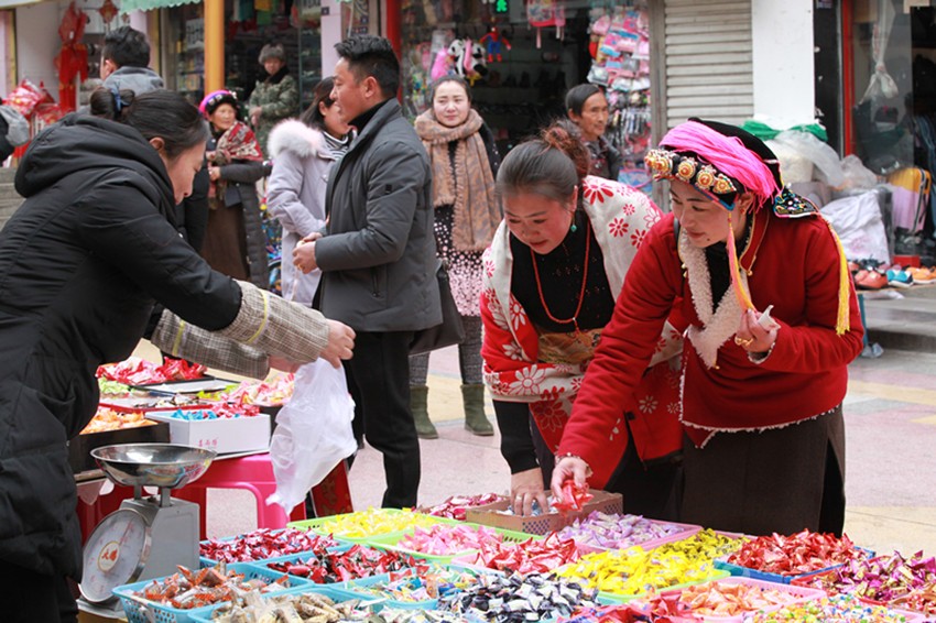 本網訊(縣委中心報道組 降初澤郎 黃蘭竣 文/圖)隨著春節(jié)和藏歷新年的臨近,丹巴縣年貨市場進入銷售旺季,濃濃的年味飄溢在全縣的大街小巷。到嘉絨步行街購置年貨,早已成為丹巴人的習慣,這幾天步行街就和成都的春熙路一樣熱鬧非凡,只見商家已將年貨擺在街邊,采購年貨者絡繹不絕,吆喝聲不絕于耳,店鋪里的年貨琳瑯滿目,各式各樣的春節(jié)飾品擺滿貨架,紅紅的中國結、大紅的燈籠、春聯(lián)、年畫,還有美味的糖果食物,音像店里飄出美妙歌聲......人們紛紛開始備年貨,迎新春。