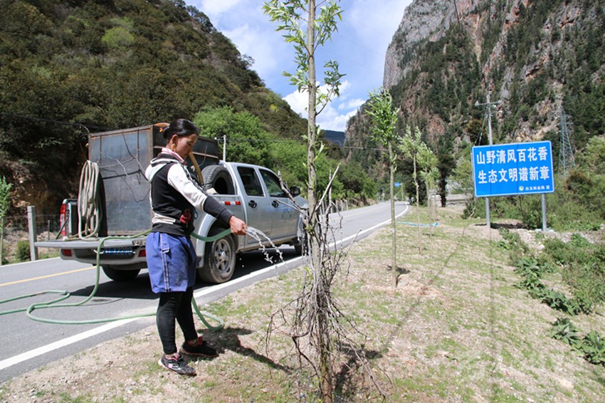 梁榮的管護隊去年中標甘白路58公里種花植樹項目工程,項目資金1600萬元,種植喬灌木50000株,樹木花草成活率必須達到90%。梁榮說,今年開春補栽了7000株喬木和灌木,力爭植樹成活率達到95%。