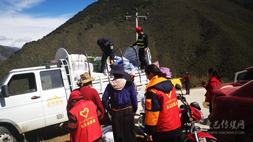 白玉縣安置點(diǎn)正在發(fā)放救災(zāi)物資。