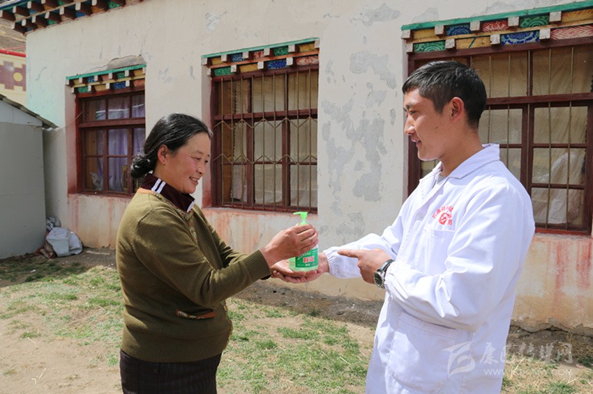 格勒桑登介紹道,他與同事在每個(gè)月上門隨訪發(fā)放洗手液時(shí),也會(huì)觀察大家洗手液的使用情況?!叭绻写迕駴]有使用洗手液,我們就會(huì)耐心的提醒村民,要讓大家逐漸形成良好的生活習(xí)慣,目前,溫波鄉(xiāng)良好的行為習(xí)慣逐漸形成,我們也十分開心?!?格勒桑登說。