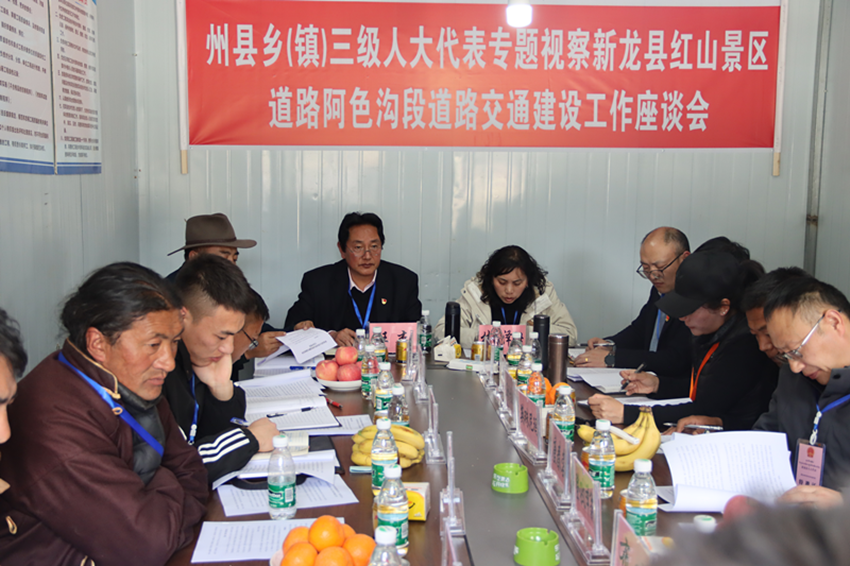 “設計車流承載量有多大,什么時候能夠完全竣工?”“要件都辦齊沒有?資金到位情況咋樣?”“全縣群眾對這條路充滿期望和關注,一定要加快進度、嚴格監(jiān)管,保證安全、質(zhì)量和環(huán)保;政府要統(tǒng)籌推動,相關部門要各司其職,確保把這條路建成惠民路、發(fā)展路、生態(tài)路、廉潔路……”2023年4月7日,新龍縣紅山景區(qū)道路阿色溝段建設施工現(xiàn)場,二十多名州、縣、鄉(xiāng)人大代表一邊查看道路建設情況,一邊對縣政府分管副縣長和相關部門負責人提出問題和建議。一問一答之間,彰顯人大依法履職、服務發(fā)展的責任和擔當。