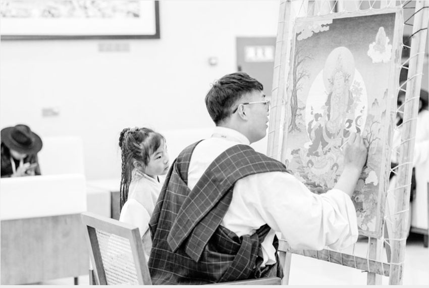 “絲路甘孜·龍燈牧場”景區(qū)里體驗畫唐卡。