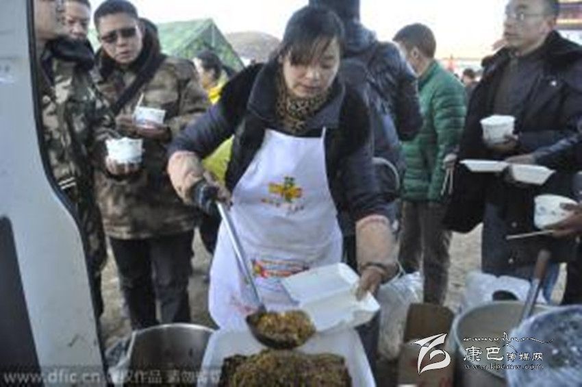 據(jù)了解,韓大哥是這家飯店的老板之一,他是仁壽縣人,幾年前和朋友來到新都橋開始經(jīng)營飯店。康定6.3級地震發(fā)生時,他人在成都。但看到災情發(fā)生,韓大哥立即和飯店另外幾個合伙人決定到安置點免費送盒飯,“我在當?shù)刈隽?、7年生意,現(xiàn)在出了事情,就應該伸手支援嘛!”據(jù)韓大哥介紹,此次地震發(fā)生后,新都橋80%左右的飯店都已經(jīng)關門,他們的飯店因為還有一些接待工作,仍在正常營業(yè)。自11月23日晚上,他家的飯店就主動為塔公鎮(zhèn)的安置點免費派送盒飯,“包括中午和晚上兩頓,兩葷兩素一湯的配置。”因為太忙, 韓大哥來不及仔細統(tǒng)計,他大概知道每天送出的盒飯在1200盒到1500盒之間,每天送出盒飯的成本在4、5千左右。但在他看來,這些其實都算不上什么,“能為災區(qū)出一份力,我們就很滿足了,我們打算一直送到抗震救災工作結(jié)束,也就是直到災民有條件自己做飯的時候。”“這邊天氣很冷,他們吃的一般是些面包、牛奶之類的干糧,我們就是想讓大家吃到熱飯、熱菜。”據(jù)韓大哥介紹,每天飯店都會派出3、4個人將盒飯運送到安置點,“只要有人需要我們都會分發(fā)盒飯,包括一些志愿者和武警官兵也吃我們的飯。
