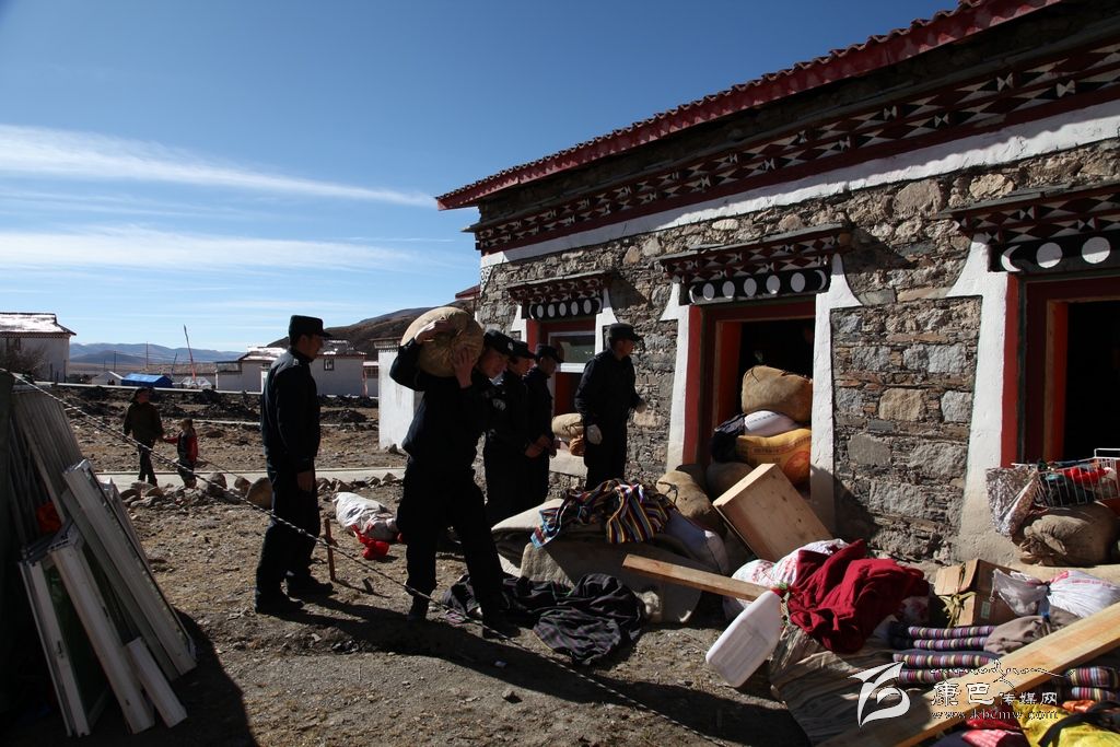 26日一大早,支隊(duì)政委牟其萬(wàn)便帶領(lǐng)55名特警隊(duì)員,前往災(zāi)情嚴(yán)重的塔公鄉(xiāng)江巴村,瓦澤鄉(xiāng)多拉一村、多拉二村、俄依村,看望幫助受災(zāi)的50余戶村民,向受災(zāi)群眾講解宣傳防災(zāi)、減災(zāi)相關(guān)知識(shí),安撫受災(zāi)群眾情緒,幫助受災(zāi)群眾積極開展災(zāi)后自救工作。其余隊(duì)員則繼續(xù)在安置點(diǎn)附近開展救災(zāi)工作。