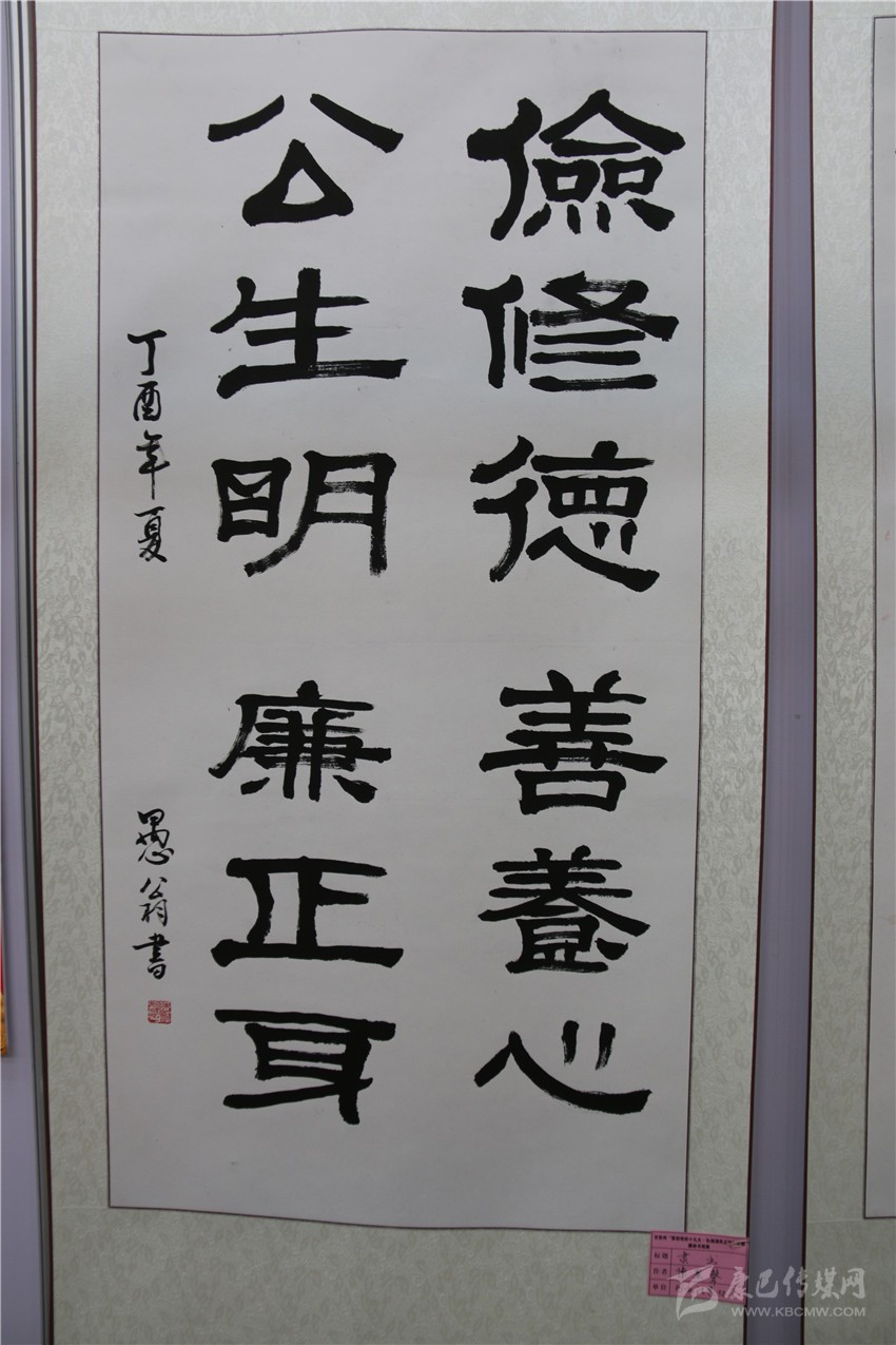 本網(wǎng)訊(記者 宋志勇 文/圖)“儉修德,善養(yǎng)心;公生明,廉正身?!薄爱?dāng)不住今天的誘惑將失去明天的幸福。”“清廉”..........。隸書、行草、草書等一幅幅書法作品行云流水、飛揚(yáng)灑脫。這是9月15日,由州紀(jì)委、州委宣傳部共同主辦,州直工委、州文明辦協(xié)辦的我州“喜迎黨的十九大?弘揚(yáng)清風(fēng)正氣”主題廉政書畫展在康定劇場(chǎng)開展時(shí),參與此次活動(dòng)的作者以各自的方式創(chuàng)作出一件件主題鮮明的精美力作,既增強(qiáng)全社會(huì)反腐倡廉意識(shí),也營造各族人民喜迎黨的十九大的濃厚氛圍。