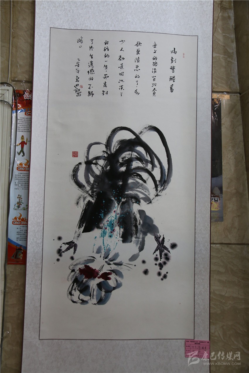 “‘松潔鶴鳴’是我親筆所繪,畫中‘松潔’表現(xiàn)的是黨員干部廉潔自律、風(fēng)清氣正的一種政治生態(tài)環(huán)境;‘鶴鳴’表現(xiàn)的是警鐘長(zhǎng)鳴,時(shí)時(shí)刻刻向黨員干部敲敲‘鐘’?!敝堇夏甏髮W(xué)書法班今年70歲的胡鄧珠指作書畫作品興奮地說。