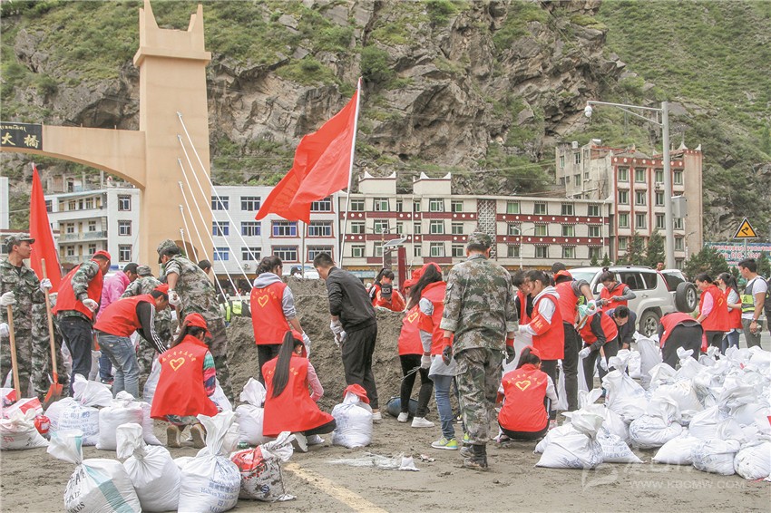 黨員志愿者活躍在抗洪搶險(xiǎn)第一線(xiàn)。
