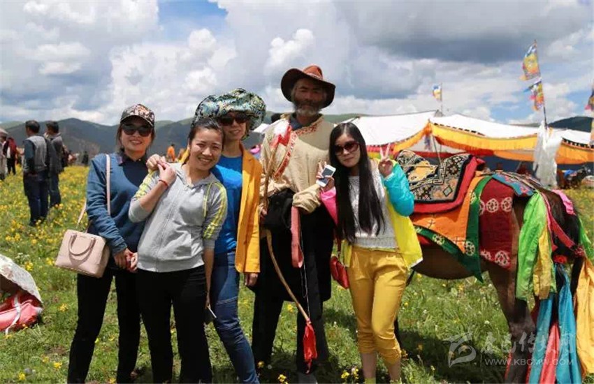 游客和牧民留影。