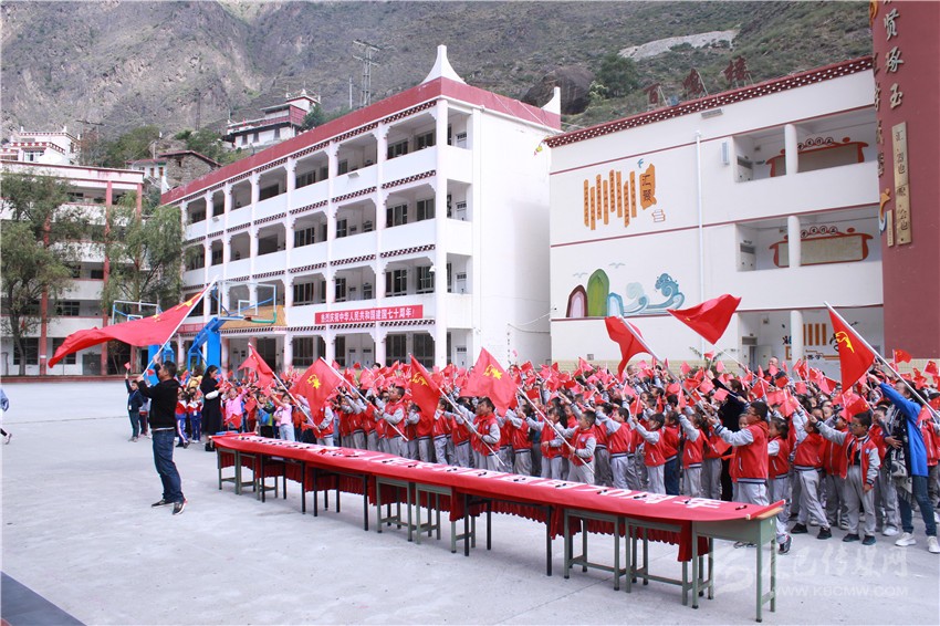圖為丹巴縣川口寄宿制學(xué)校正在開展愛國(guó)主義教育活動(dòng)。 丹宣 圖