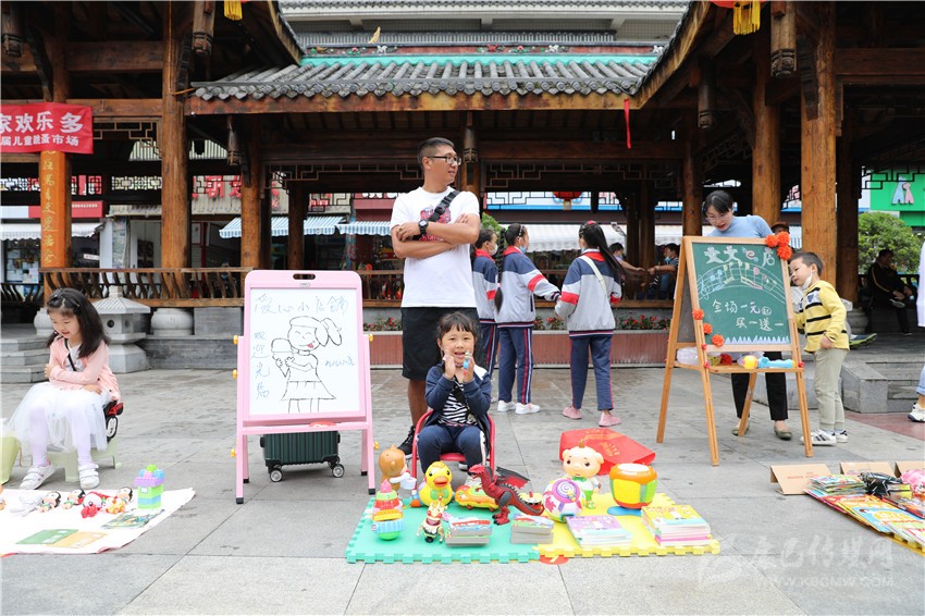“這個玩具1元錢賣不賣?”“已經(jīng)很便宜啦!最低3元錢。”5月31日,瀘定橋廣場人流涌動、熱鬧非凡,叫賣聲不絕于耳,不少“小顧客”在各個攤位之間,認(rèn)真地挑選自己心儀的商品,有模有樣地討價還價,廣場變成了熱鬧的自由貿(mào)易市場。