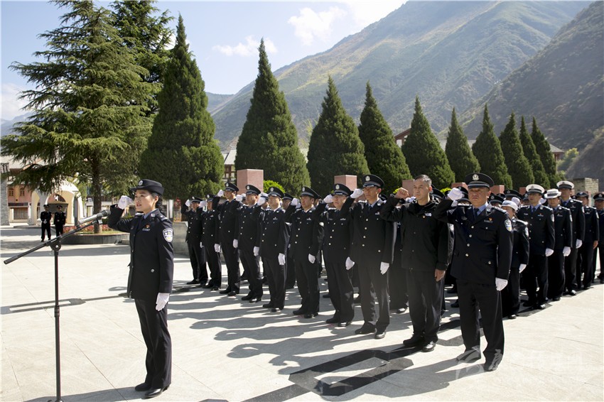 州政府副州長、州公安局長李強率參與民警向紅軍飛奪瀘定橋紀(jì)念碑敬獻(xiàn)花籃,莊嚴(yán)鞠躬,表達(dá)沉痛哀思。在紅色圣地,民警們還面對鮮紅黨旗,舉起右拳,重溫入黨誓詞,向革命烈士致以最崇高的敬意。