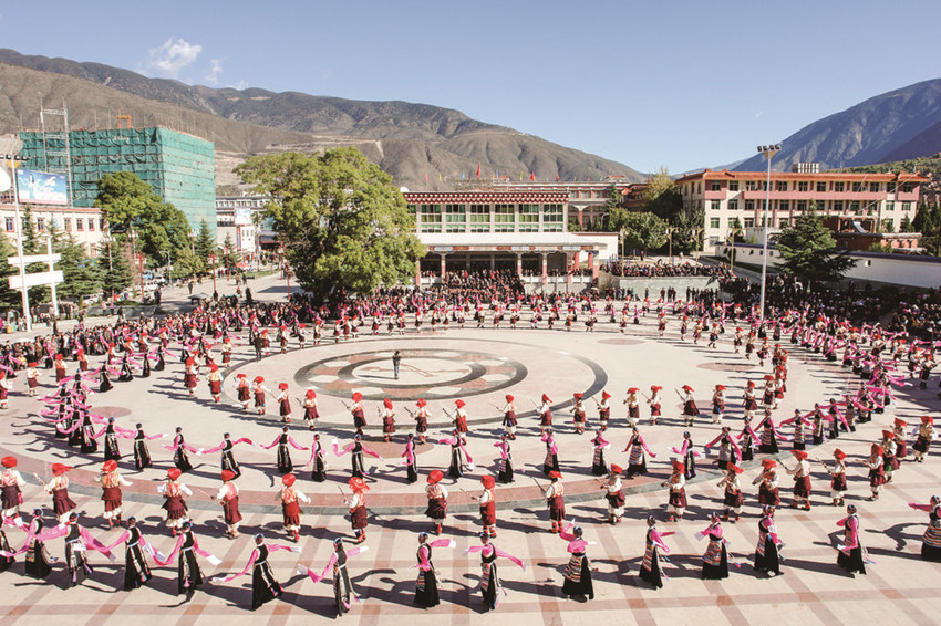 甘孜州有藏、漢、彝、羌、納西、回等20多個民族,其中藏族人口占81.5%。從古至今,甘孜大地各族群眾交往交流交融,各族群眾“同唱一首歌、同跳一支舞、同吃一桌飯”成為習以為常的生活場景,人心凝聚、團結(jié)奮進的精神紐帶更加牢固。
