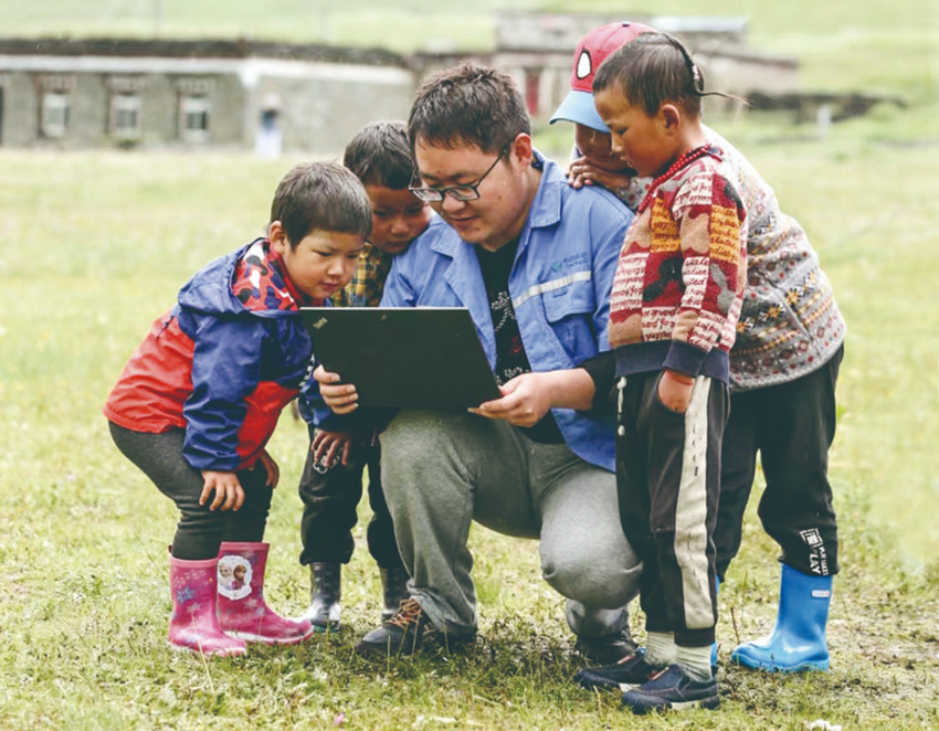 高原農牧區(qū)的孩童“觸網”看到外面的世界。
