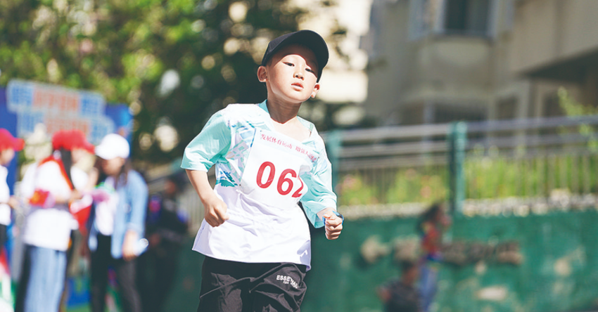 低齡參賽選手跑步向前。