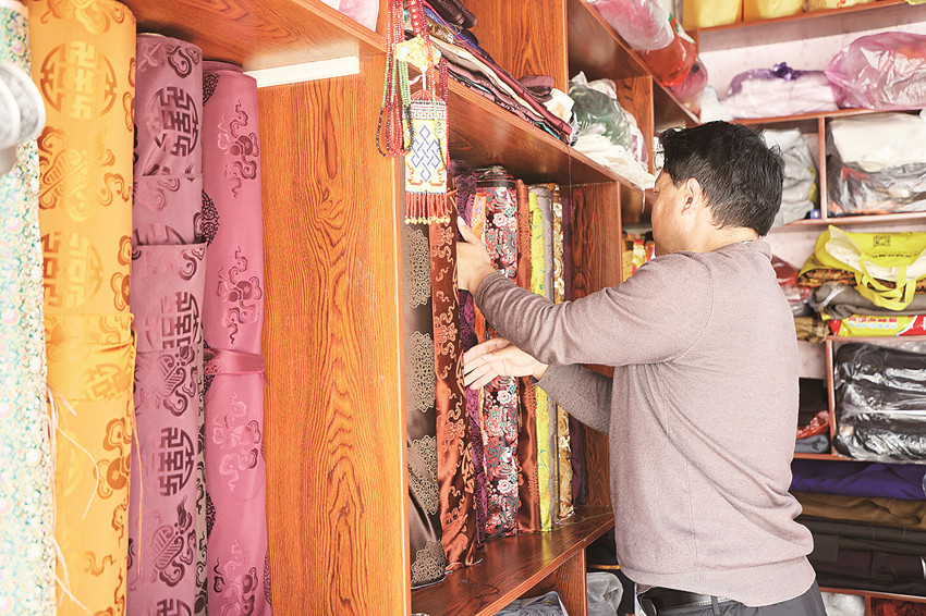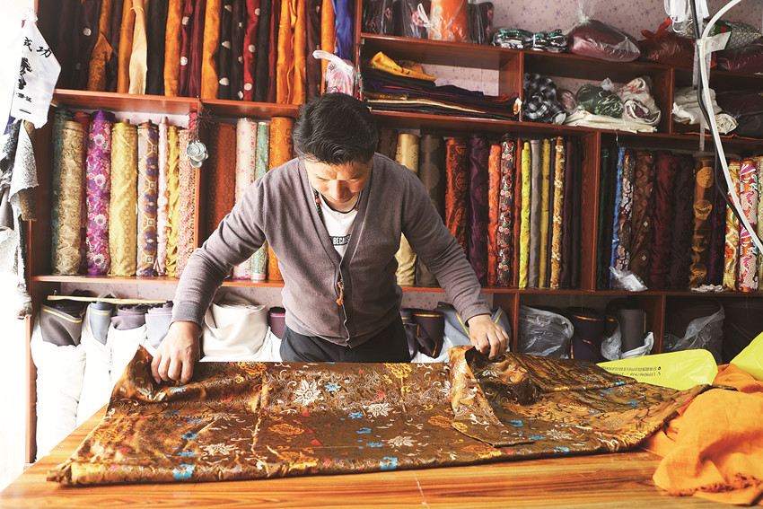 扎西澤仁整理布料。