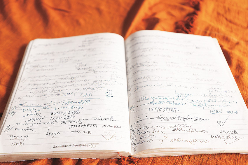 扎西澤仁的筆記本記滿顧客要求、價(jià)格等信息。