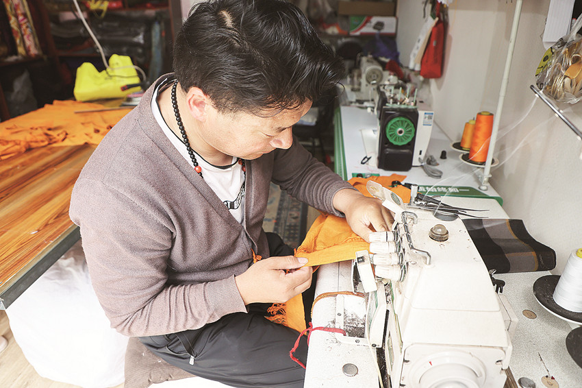 扎西澤仁準(zhǔn)備上機(jī)縫合布料