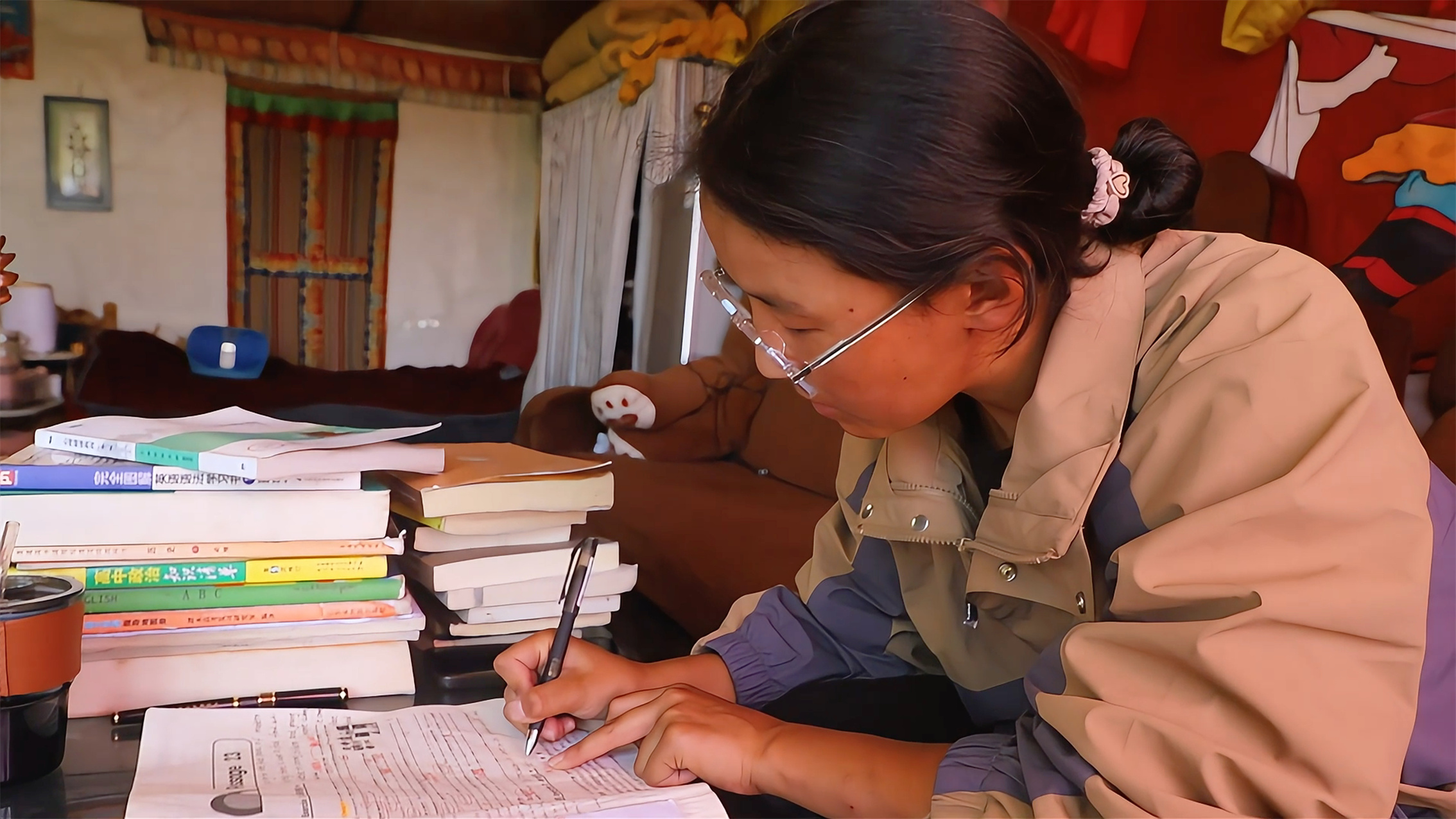 扎西拉姆作為家中的老四,從小便展現(xiàn)出了與眾不同的堅(jiān)韌與聰慧。她深知家里的每一筆開銷都凝聚著父母的汗水與期望,因此,在學(xué)習(xí)上她從未有過(guò)絲毫懈怠?!懊看畏偶倩貋?lái),我都會(huì)很快地做完家務(wù)事,然后開始學(xué)習(xí),想到唯有學(xué)習(xí)才能夠改變家中的現(xiàn)狀,更能改變自己的命運(yùn),我就充滿斗志。我從不會(huì)給自己設(shè)立固定的學(xué)習(xí)環(huán)境,草地和山坡都是我學(xué)習(xí)的平臺(tái)?!辈莸厣稀⑸狡骂^、夜深人靜的燈光下……總能見(jiàn)到扎西拉姆埋頭苦讀的身影。