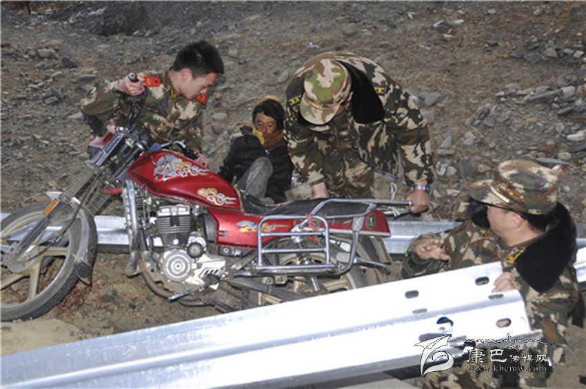 11月29日,甘孜州消防官兵在抗震救災途中,發(fā)現(xiàn)一名騎摩托車的青年摔倒在5米高的路基下,右腿被死死被壓住不能動彈。據(jù)了解,消防官兵結束道孚縣中古村安置點消防安全檢查,準備返回祖慶學校安置點,行駛至塔公鄉(xiāng)海拔4000米左右處,發(fā)現(xiàn)事發(fā)摩托車就在消防官兵所乘車輛前10米處。駕駛人員是一名藏族青年,在他發(fā)動摩托車時,轉眼就摔倒掉下公路路基。