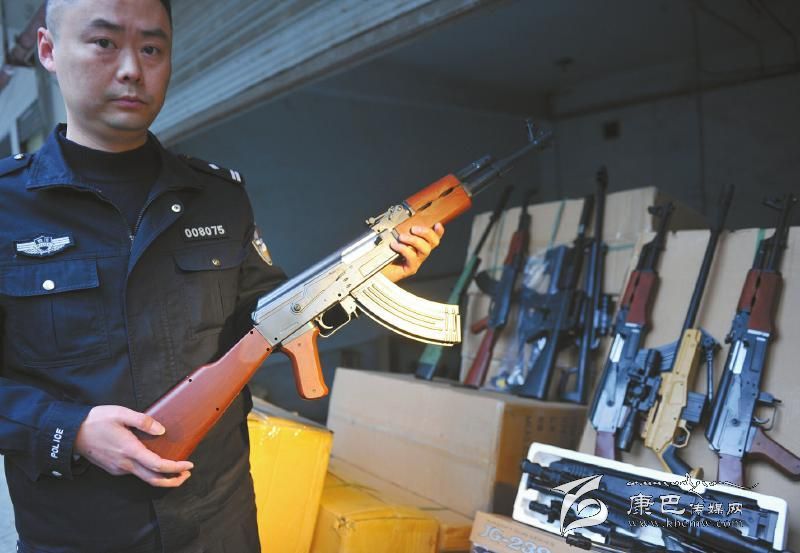 滿滿的一瓶礦泉水,經(jīng)過一支“AK47自動(dòng)步槍”掃射之后,瓶身洞穿,水瞬間變成了半瓶。11月28日下午6點(diǎn)半,成都市公安局金牛分局楊柳派出所民警文彤在現(xiàn)場(chǎng)演示了這一幕,“盡管只是BB彈,但仿真槍威力可不小。”當(dāng)日,楊柳派出所在轄區(qū)內(nèi)共查獲212箱、上萬支仿真槍。而記者調(diào)查發(fā)現(xiàn),目前,成都仿真槍市場(chǎng)在軍迷的推動(dòng)下仍然如火如荼,但因?yàn)殇N售網(wǎng)絡(luò)化,追查難度進(jìn)一步加大。